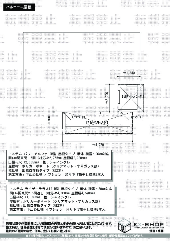 サイズ | 屋根幅 4,570mm 出幅 1,185mm |