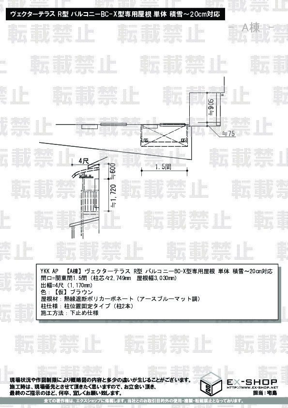 | サイズ | 屋根幅 3,030mm 出幅 1,170mm |