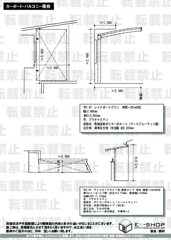| サイズ | 屋根幅 5,030mm 出幅 1,170mm |