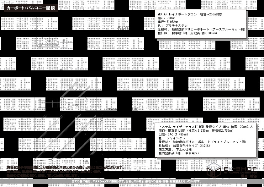 | サイズ | 屋根幅 2,750mm 出幅 1,485mm |