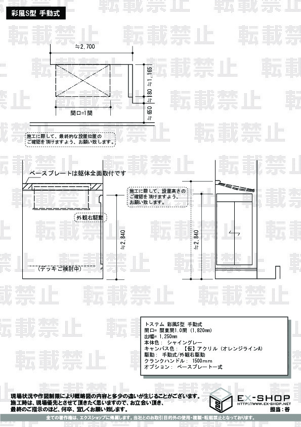 | サイズ | 間口 1,820mm 出幅 1,250mm |