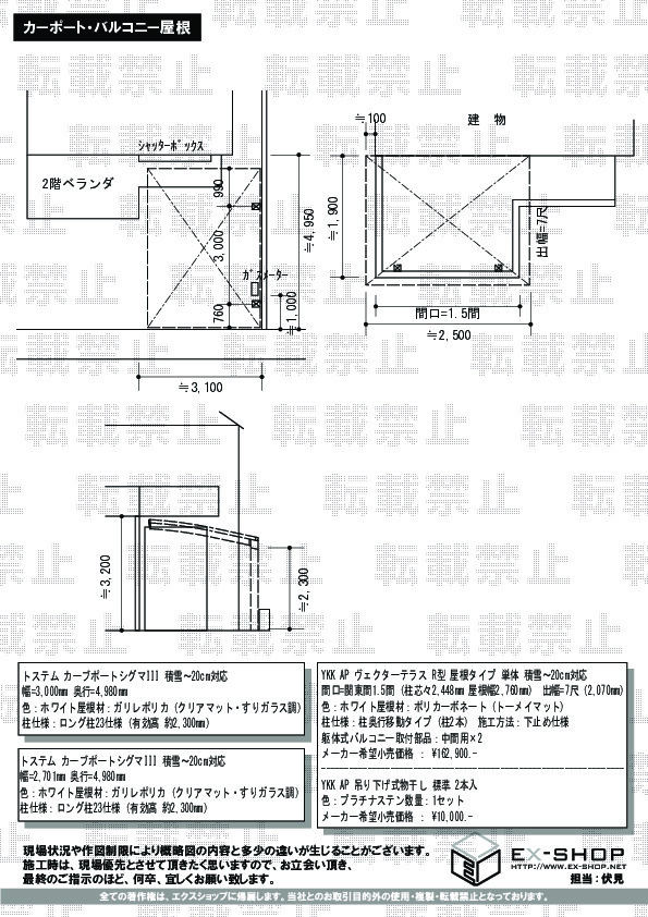 | サイズ | 屋根幅 2,760mm 出幅 2,070mm |