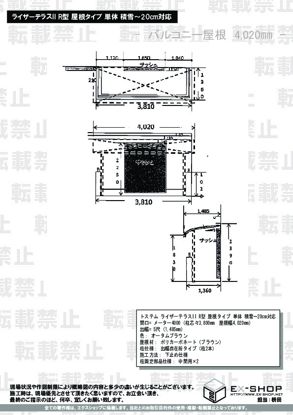 | サイズ | 屋根幅 4,020mm 出幅 1,485mm |