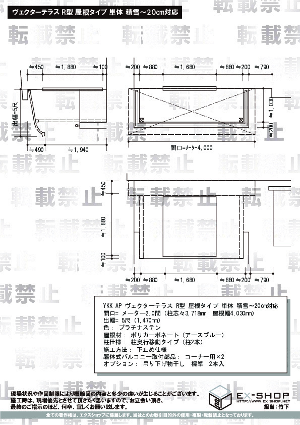 | サイズ | 屋根幅 4,030mm 出幅 1,470mm |