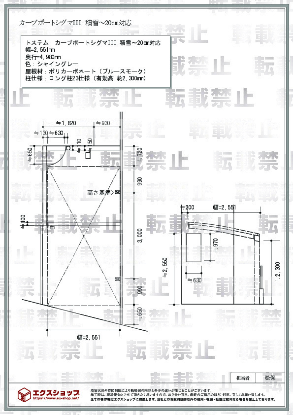 | 屋根高等 | ロング柱23仕様(有効高 約2,300mm) |