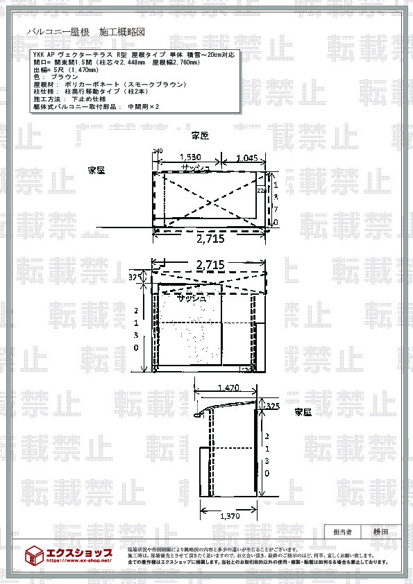 | サイズ | 屋根幅 2,760mm 出幅 1,470mm |