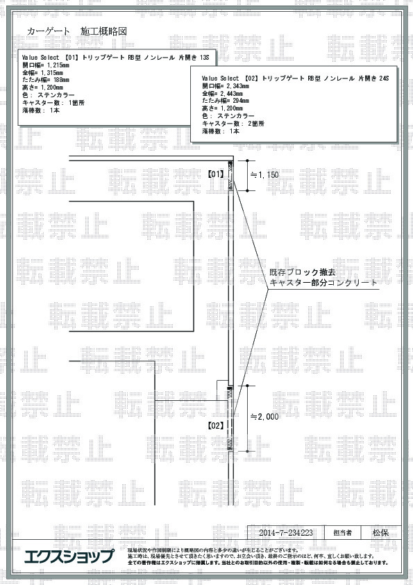 夏の台風で既設のカーゲートが破損し、開閉不可となっており改修を試みるも、他社に見積もり依頼をしていましたが、見積もりがなかなか出て来ず、また出た見積もりは今回行った施工費の5倍ほどの金額が提示されていたためエクスショップに依頼しました。きちんと施工頂き、品質にも満足しております。