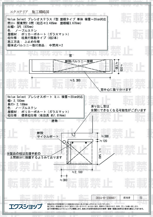 | サイズ | 屋根幅 3,670mm 出幅 870mm |