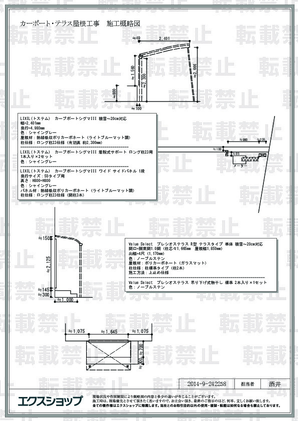 この度はカーブポートシグマIII並びにプレシオステラス R型の施工をご依頼頂きまして、誠に有り難うございます。早速快適にカーポートとテラス屋根をご利用頂けておりますようで私どもも大変嬉しく感じております。カーポートに追加されたサイドパネルは、雨の吹込みを軽減するほか、隣家様との目隠しとしても機能的にご利用頂けますね。今後もお客様により快適な生活をお過ごし頂けますよう日々精進して参る所存でございますので、また機会がございましたらエクスショップをご利用下さいますよう、宜しくお願い致します。