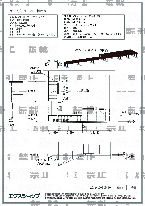 マージウッドデッキとリウッドデッキ 200の2点の施工のご依頼を頂きまして、誠にありがとうございます。ウッドデッキがナチュラルで温かみのある雰囲気のお住まいにマッチし、とても素敵な仕上がりでございますね。マージウッドデッキとリウッドデッキは天然木に比べお手入れが簡単で、耐久性がございますので、永くご愛用頂けますと、幸いでございます。この度は弊社の提携施工店の担当者の体調不良で工期が延びる形となり、お客様には多大なるご迷惑をお掛けしました事、大変申し訳ございませんでした。また隙間が出来ていた事につきまして、施工方法の伝達に至らぬ点がございました事、重ねてお詫び申し上げます。今後はより確実で迅速な対応が出来ますよう、心掛けて参りますので、また機会がございましたら、是非エクスショップにご用命頂きますよう、宜しくお願い申し上げます。