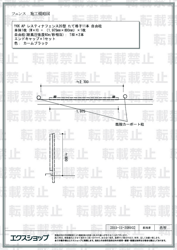 レスティナフェンス20型2点の施工のご依頼を頂きまして、誠に有り難うございます。いずれのフェンスも周りの景観を損ねる事なく収まりました事、喜ばしく存じます。カームブラックのお色のフェンスは周囲の雰囲気をグッと引き締め、スタイリッシュなお仕上がりでございますね。自転車の防犯性を高め、より一層安心して頂ける環境になりましたら、幸いでございます。当商品をお気に召して頂き、永くご愛用頂けますと幸いでございます。これからもお客様の快適な暮らしの為に、スタッフ一同努力して参りますので、また機会がございましたら、是非エクスショップにご用命頂きますよう、宜しくお願い申し上げます。