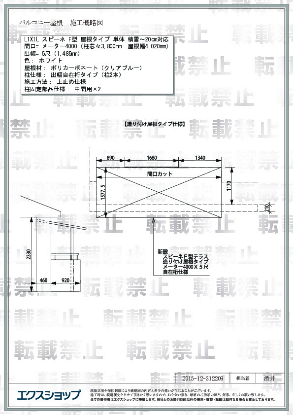 | サイズ | 屋根幅 4,020mm 出幅 1,485mm |
