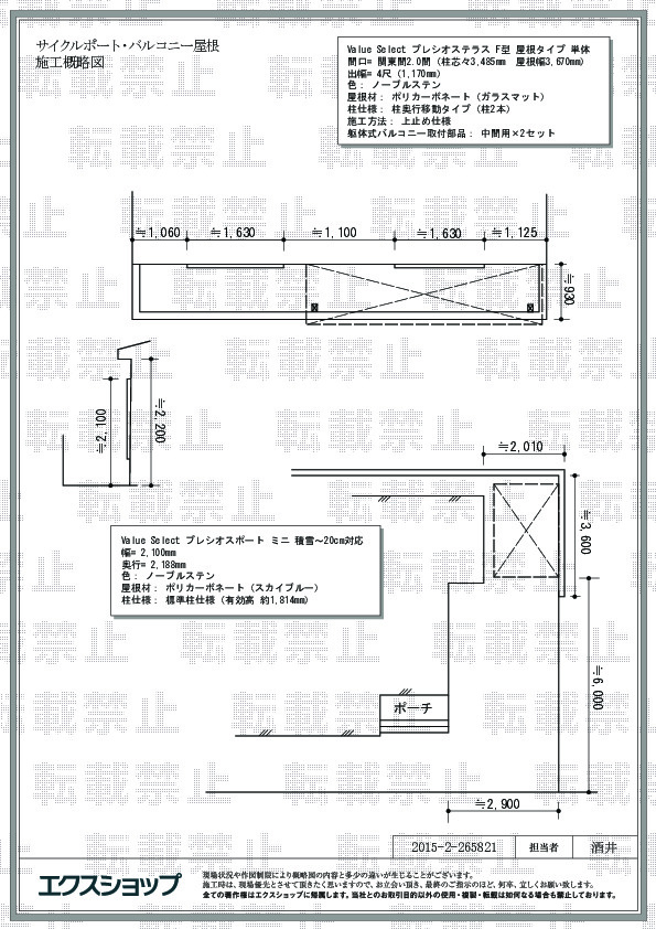 | サイズ | 屋根幅 3,670mm 出幅 1,170mm |