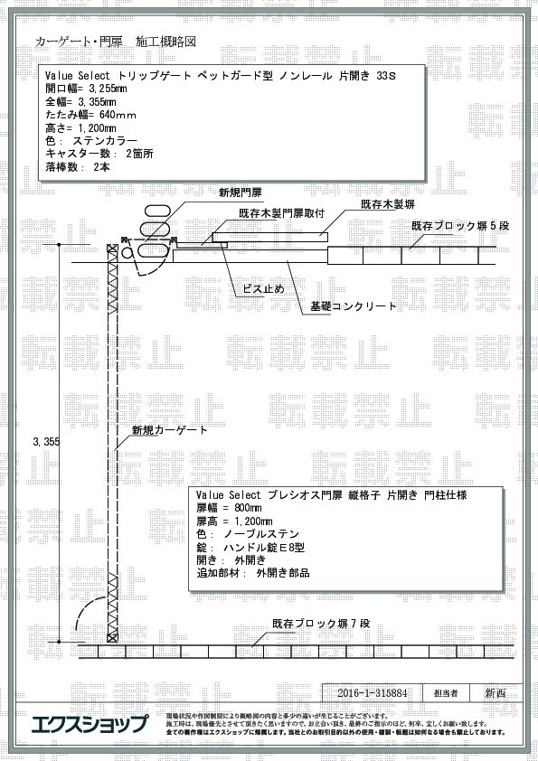 ペットが通れないゲートを探していたので、希望のものが予算の範囲内で施工できそうだったので決定。