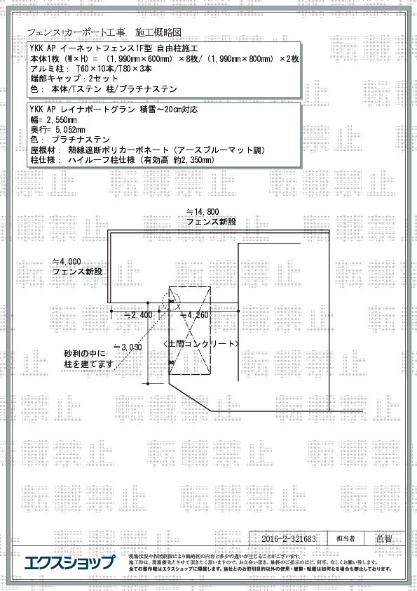 イーネットフェンス1F型とレイナポートグランの施工をご依頼頂きまして、誠に有り難うございます。背の高いフェンスですが、視線を遮ることがなく、見晴らしのよいお仕上がりでございますね。広いお庭を、元気に走り回るお子様の声が聞こえてくるようでございます。熱線遮断ポリカーボネート(アースブルーマット調)の屋根がお車をお守りしますので、冬場はフロントガラスの凍結が軽減され、夏場は車内温度の上昇が抑えられるものと存じます。今後も、エクステリアの施工を通してお客様に笑顔をお届け出来ますよう、日々精進して参りますので、また機会がございましたら、是非エクスショップにご用命頂きますよう宜しくお願い致します。
