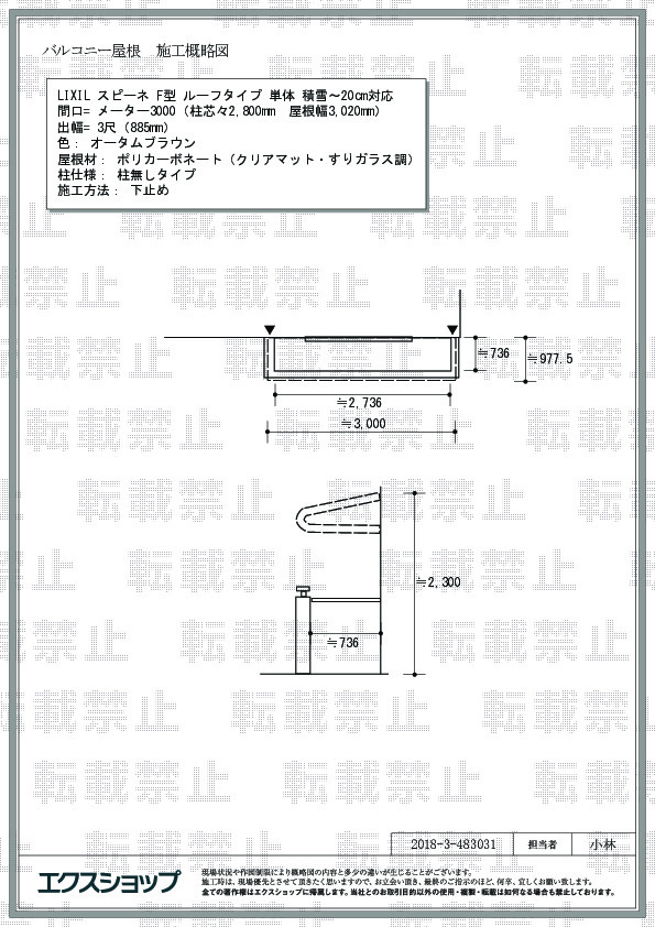| サイズ | 屋根幅 3,020mm 出幅 885mm |