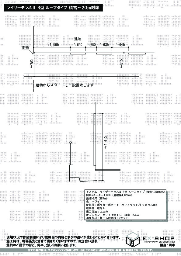 サイズ | 屋根幅 4,020mm 出幅 885mm |