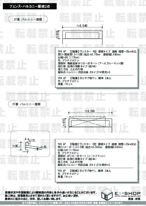 | サイズ | 屋根幅 6,030mm 出幅 1,170mm |