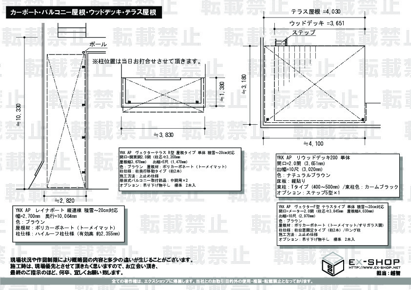 | サイズ | 屋根幅 4,030mm 出幅 2,970mm |