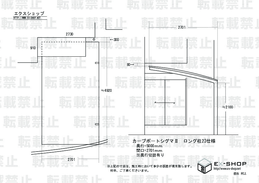 | サイズ | 間口 2,755mm 出幅 1,185mm |