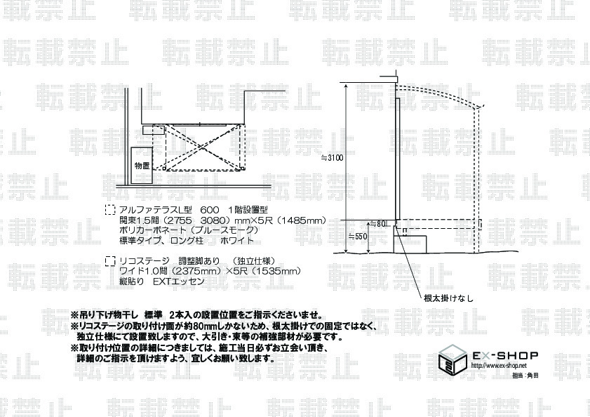 | サイズ | 間口 2,755mm 出幅 1,485mm |