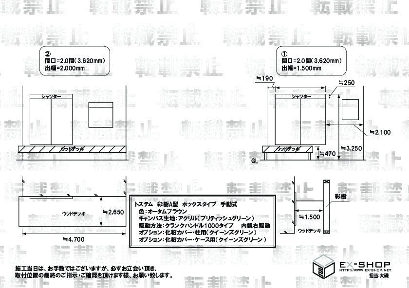 サイズ | 間口 3,620mm 出幅 2,000mm |