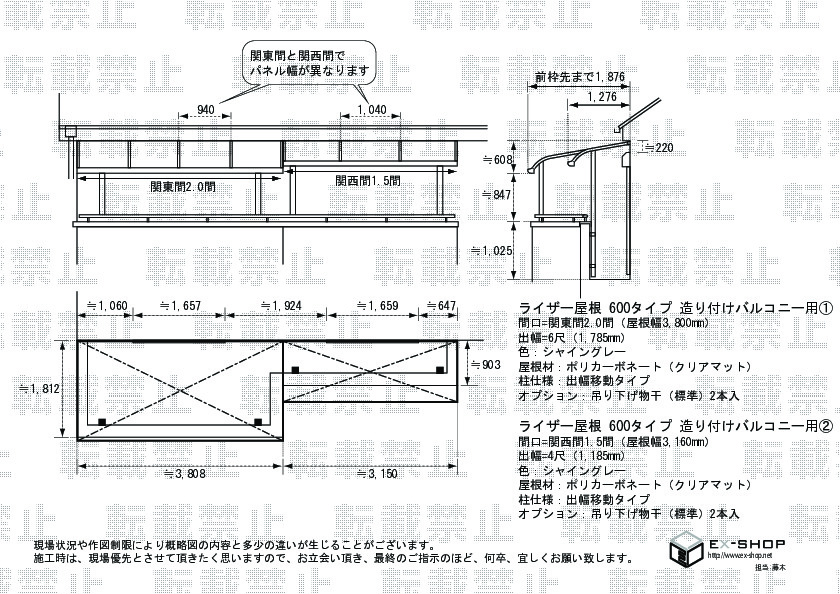 | サイズ | 屋根幅 3,160mm 出幅 1,185mm |