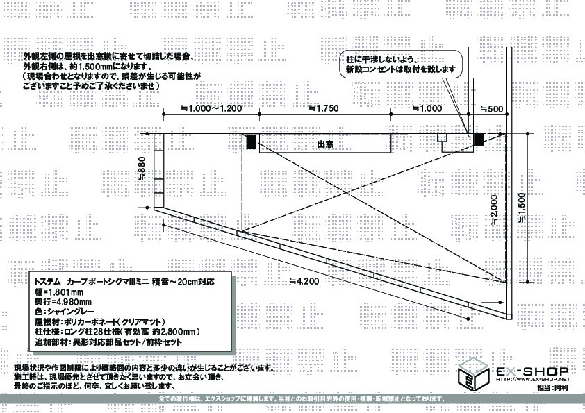 窓にかからず斜め敷地に納めさせて頂くサイクルポートを増設!ということで、植栽の撤去や土間打ち工事といったリフォームを行わせて頂き有難うございました。職人技としか説明のつかない斜め切り詰め加工にて納めさせて頂きましたが、ご満足頂けとても嬉しく思います。また機会がございましたら、ぜひエクスショップをご利用頂けますよう宜しくお願い致します。