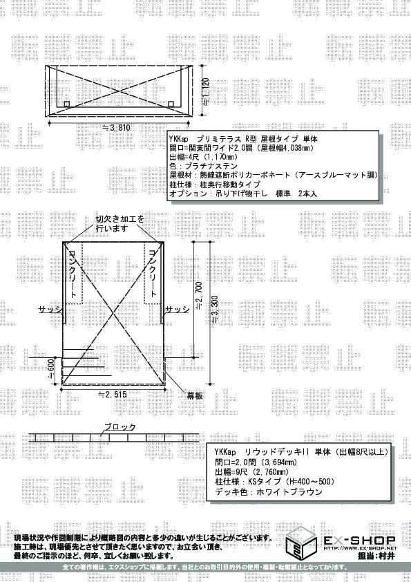 | サイズ | 屋根幅 4,038mm 出幅 1,170mm |