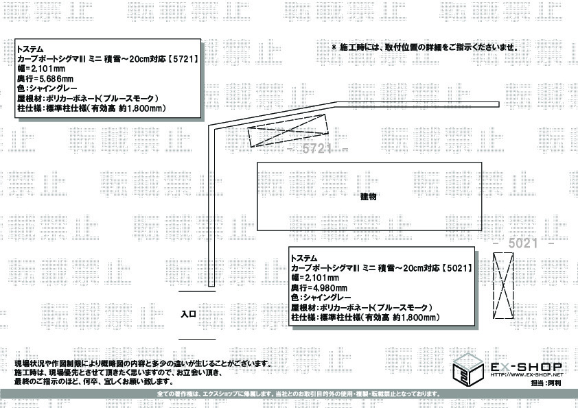 | 屋根高等 | 標準柱仕様(有効高:1800mm) |
