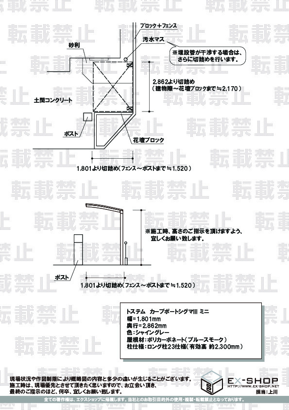 | サイズ | 柱芯々 3,440mm 屋根幅 3,660mm 出幅 1,185mm |