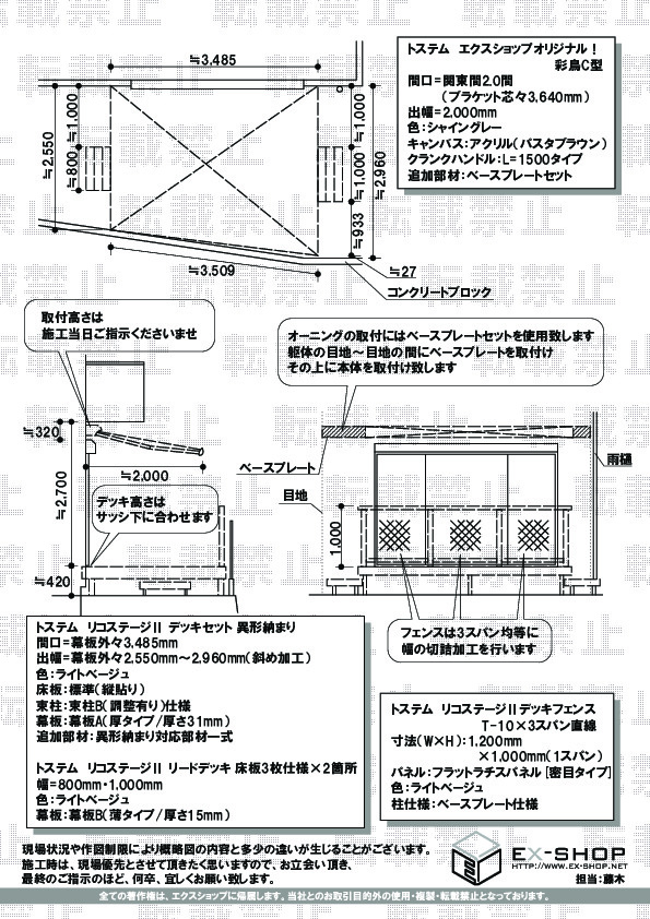 | サイズ | 間口 3,640mm 出幅 2,000mm |
