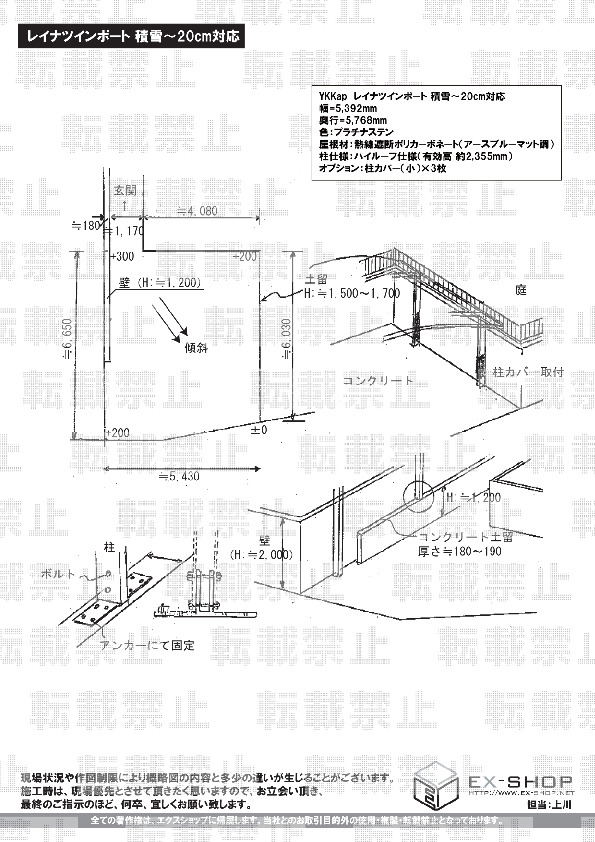 サイズ | 柱芯々 3,358mm 屋根幅 3,678mm 出幅 2,070mm |