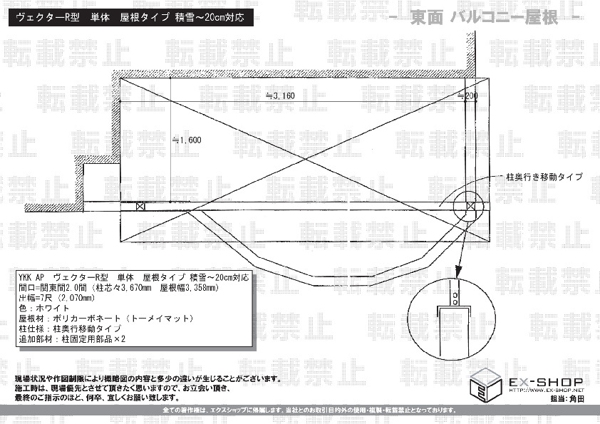 | サイズ | 屋根幅 6,400mm 出幅 1,470mm |