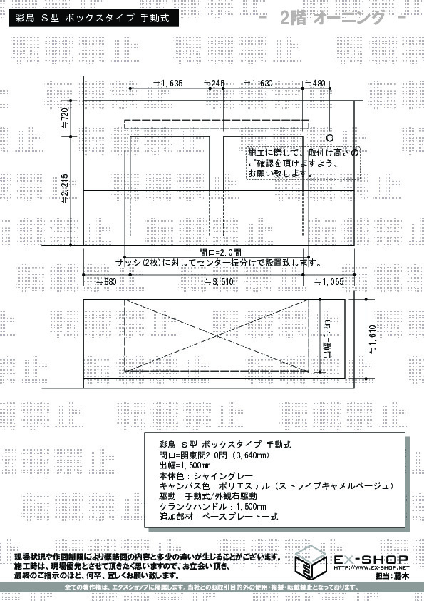 | サイズ | 間口 3,640mm 出幅 1,500mm |