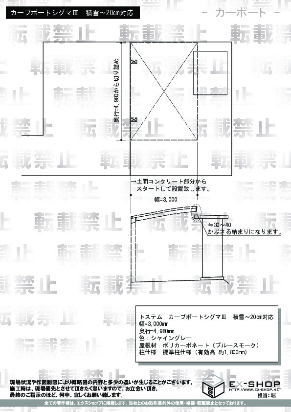 サイズ | 屋根幅 4,020mm 出幅 1,185mm |