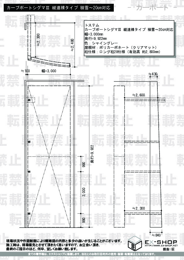 屋根高等 | ロング柱28仕様(有効高 約2,800mm) |