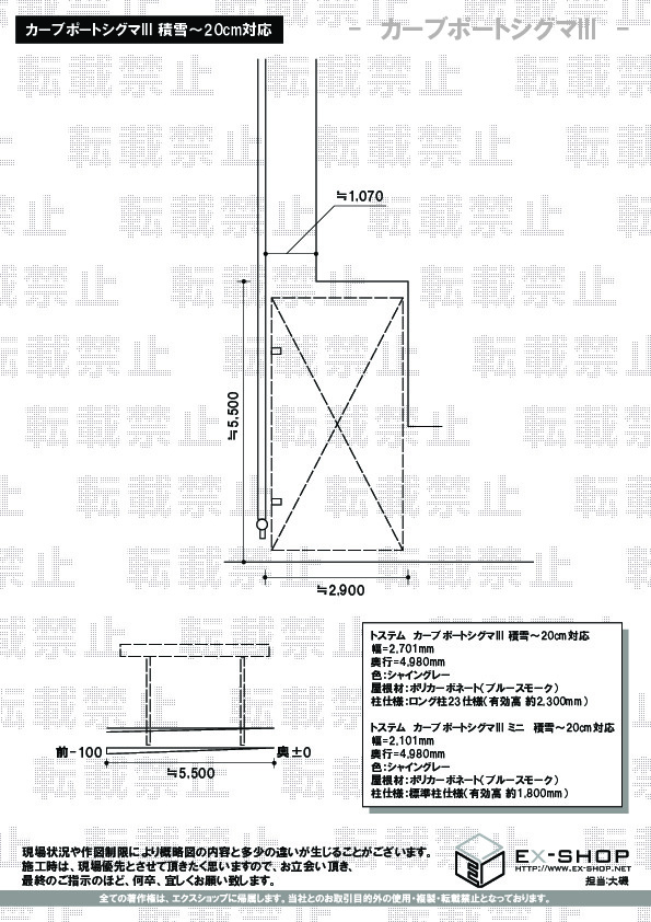 | 屋根高等 | 標準柱仕様(有効高:1800mm) |