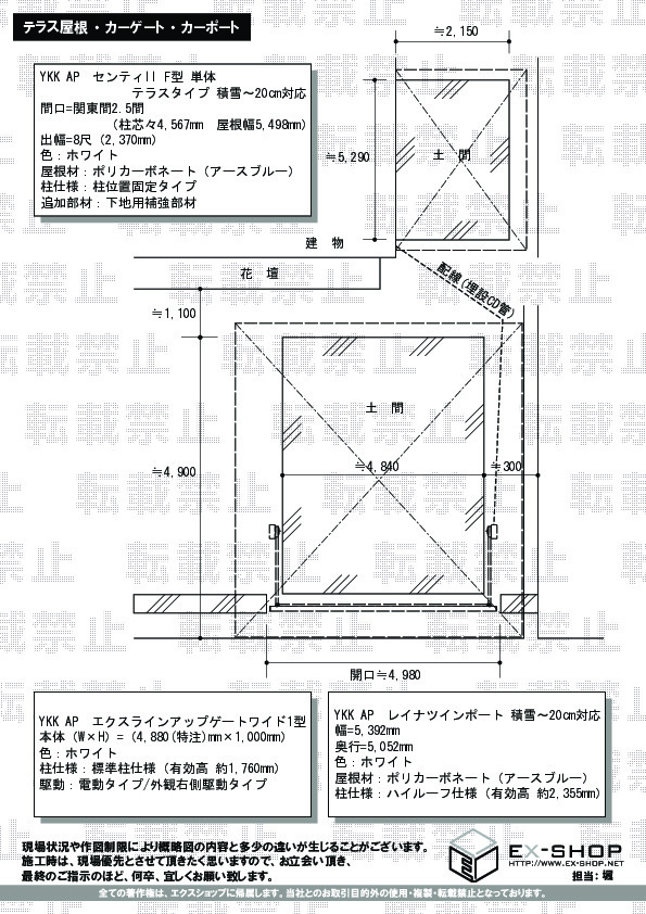 サイズ | 柱芯々 4,567mm 屋根幅 5,498mm 出幅 8尺(2,370)mm |