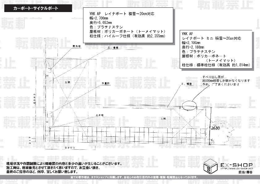| 屋根高等 | 標準柱仕様(有効高:1800mm) |