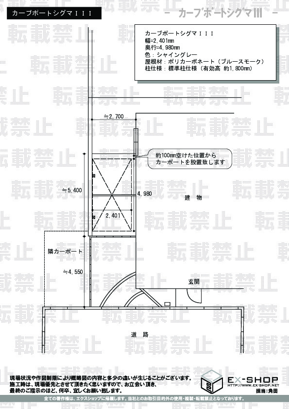 | 屋根材等 | ポリカーボネート(ブルースモーク) |