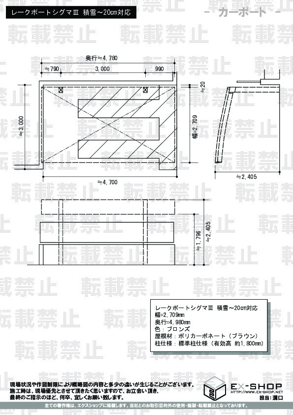 | 屋根材等 | ポリカーボネート(ブラウン) |