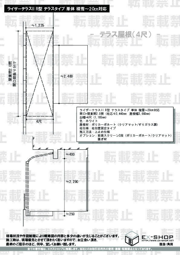 サイズ | 屋根幅 3,660mm 出幅 1,185mm |