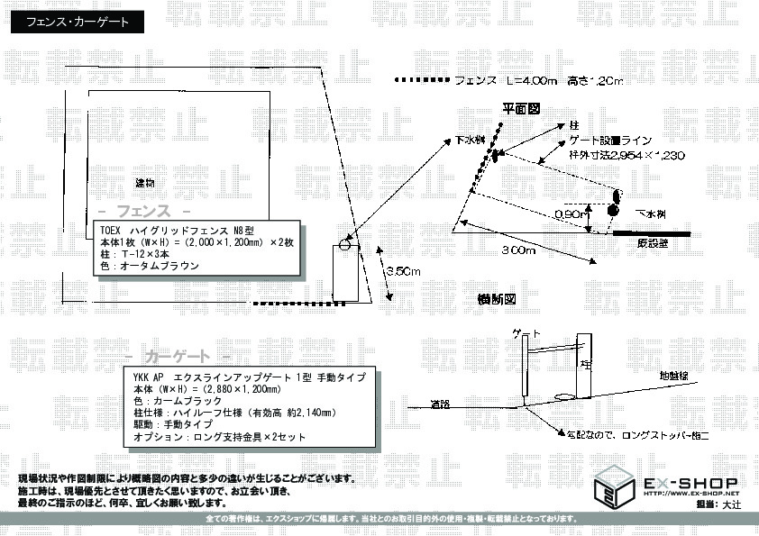 この度は、フェンスとエクスラインアップゲート1型の施工をご依頼頂きまして、誠に有難うございます。立派なご自宅にぴったりのカーゲートが施工できましたこと、大変嬉しく思います。弊社対応への嬉しいお褒めのお言葉をお寄せ頂きましたこと、重ねて御礼申し上げます。これからも、お客様のご期待を裏切らないよう精進して参りますので、また機会がございましたら、ぜひエクスショップをご利用頂けますよう、宜しくお願い致します。