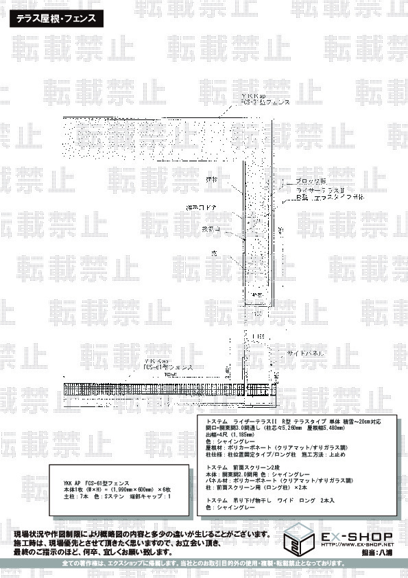 サイズ | 屋根幅 5,480mm 出幅 1,185mm |