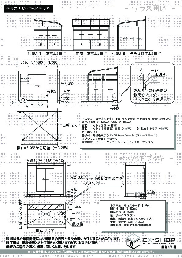 顔の見えないネットショッピングではありますが、お客様に出来るだけご満足して頂きたいとの思いで、日々精進しておりますので、このようなお言葉を頂き、大変光栄でございます。ほせるんですII R型と、リコステージIIが、お客様の敷地に綺麗に納まり、スタッフ一同大変嬉しく存じます。明るく、圧迫感の無いテラス囲いが完成して、お喜び頂いているものと存じます。施工士にとりましても、お客様のお喜びのお言葉が何より励みとなっております。今後ますます精進して参りますので、また機会がございましたら、ぜひ弊社をご用命くださいますよう、お願い申し上げます。