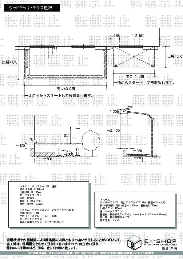 | サイズ | 屋根幅 2,750mm 出幅 1,485mm |