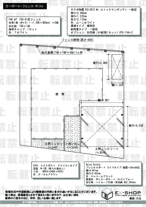 ご自宅の外観に大きな影響を与えますエクステリアの施工を、弊社を信頼してお任せ頂きましたこと、大変光栄に存じます。ワイドタイプのプレシオスポートですが、ハイルーフ仕様で圧迫感のない納まり具合でございますね。軽やかなTホワイトのフェンスが、目にも鮮やかで素敵ですね。これからも、お客様のご期待を裏切らないよう精進して参りますので、また機会がございましたら、ぜひエクスショップをご利用頂けますよう、宜しくお願い致します。
