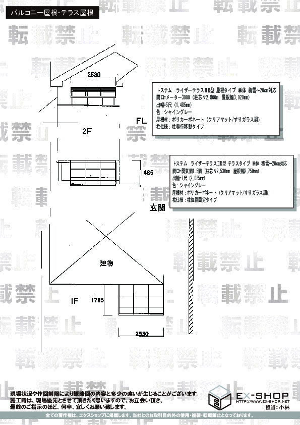 サイズ | 屋根幅 2,750mm 出幅 2,085mm |