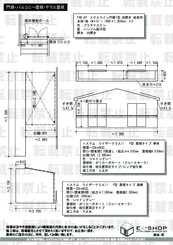 | サイズ | 屋根幅 7,300mm 出幅 885mm |